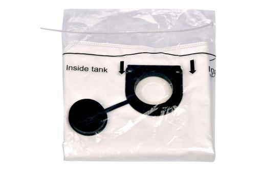 » Nach Entfernen des Beutels aus dem Behälter, umschließt der äußere PE-Beutel den Vliesfilterbeutel und ermöglicht eine komfortable und staubfreie Entsorgung